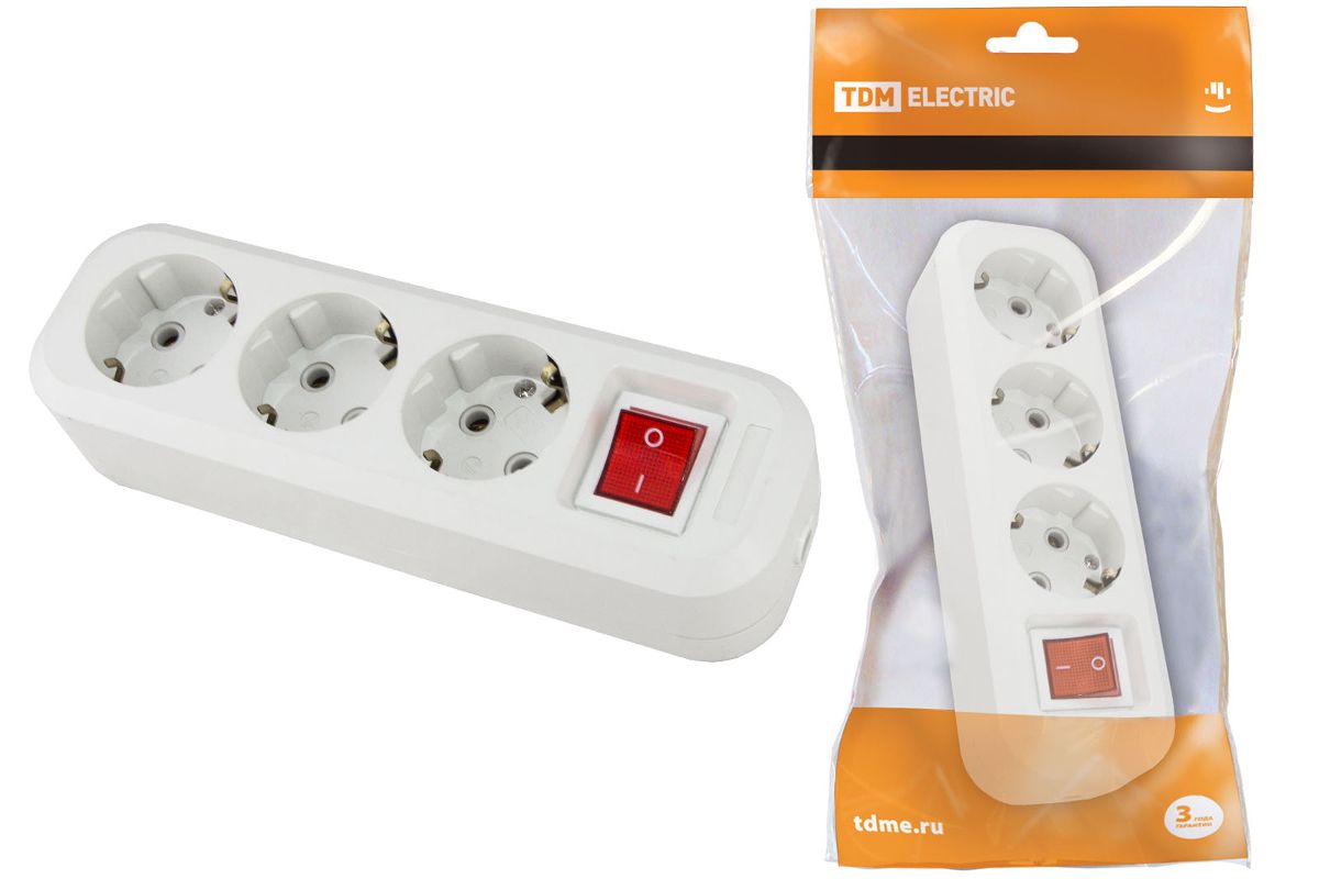 - Колодка -3 гнезда, с/з, с выключателем;