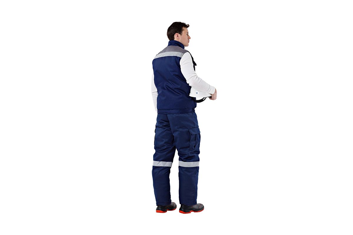 Жилет утепленный, укороченный, на поясе с центральной застежкой на молнию, ветрозащитной планкой на текстильную застежку.