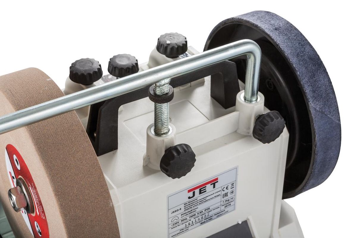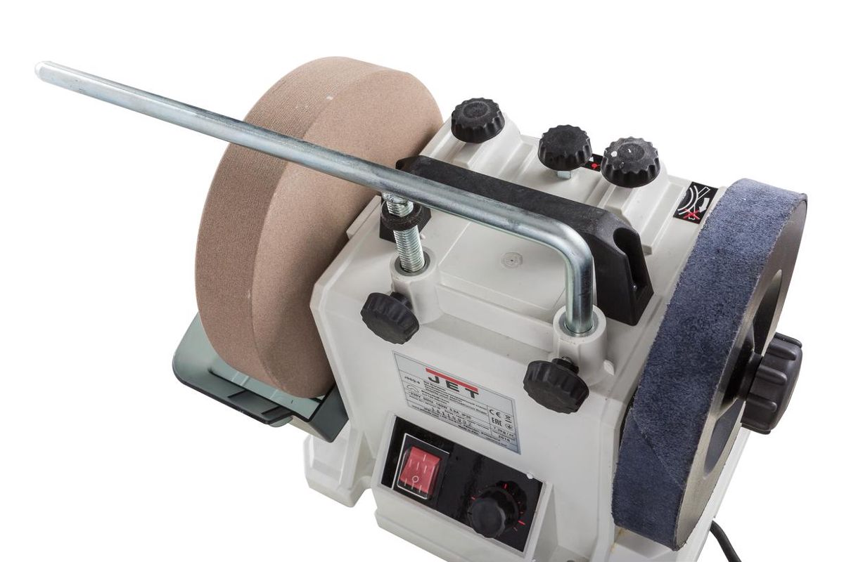 Благодаря удачному сочетанию характеристик и возможности регулирования скорости вращения, станок востребован у мастеров, работающих с деревом, поскольку именно они сталкиваются с необходимостью заточки большого количества инструмента с лезвием из углеродистой стали, имеющей слабую температурную стойкость. Дополнительное достоинство Jet JSSG-8-M – диаметр кронштейна для установки приспособлений соответствует распространенному стандарту (12 мм), что облегчит их подбор и покупку.