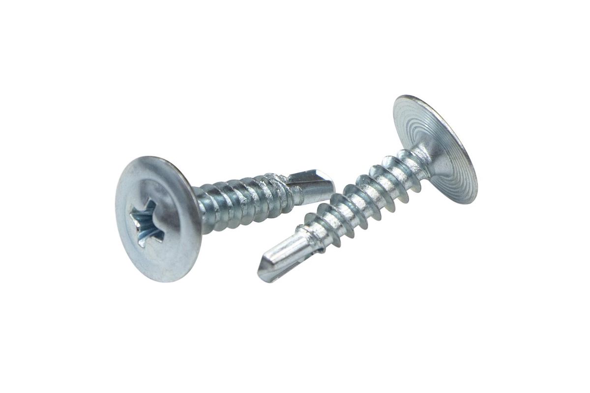 Данному саморезу характерна частая резьба, особенность крепежа по металлу, широкая головка, которая обеспечивает хорошую прочность соединения, и наконечник в форме сверла.