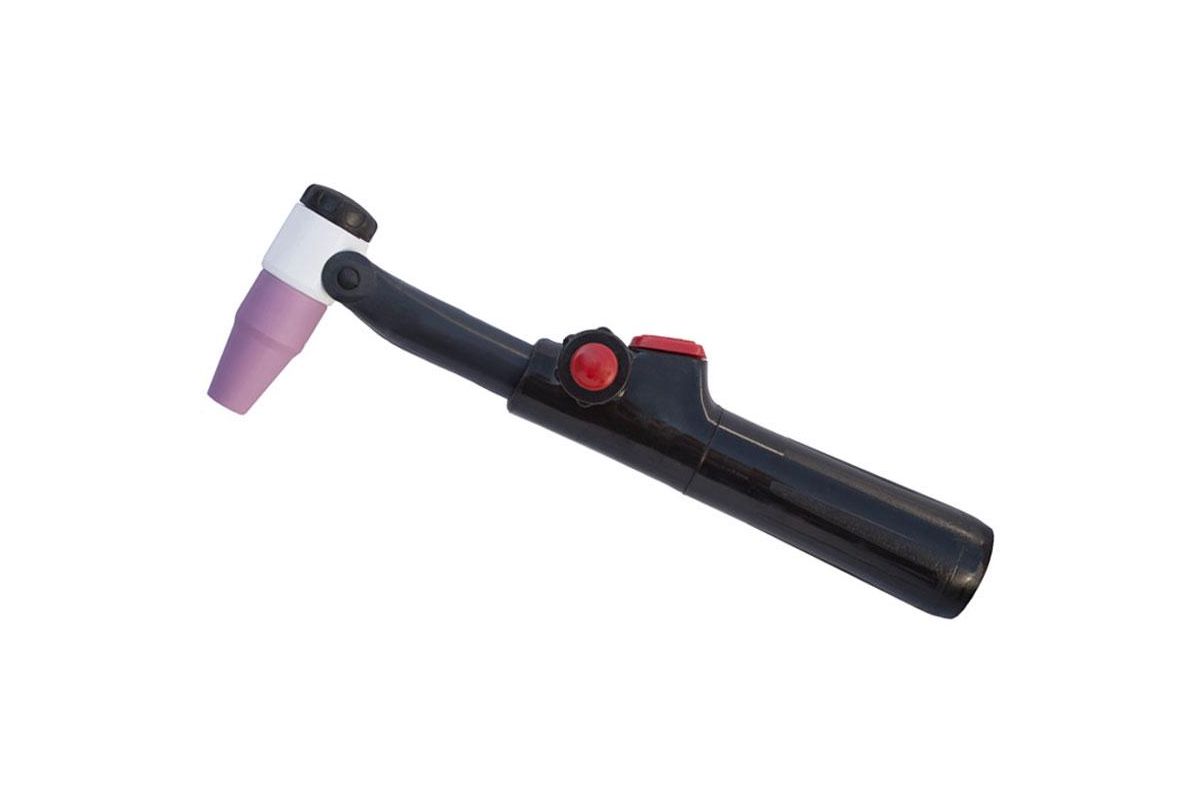 -горелка имеет кнопку дистанционного управления сварочным током и краник для регулирования расхода защитного газа.