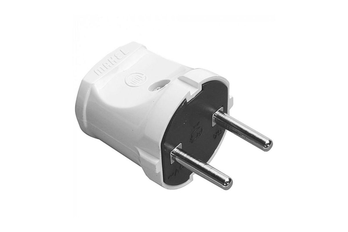 Белая вилка без заземления Makel 10001 изготовлена из прочного самозатухающего пластика и используется для нестационарного подсоединения электротехнического оборудования к сети. Зажим провода происходит винтовым способом. Изделие работает при номинальном напряжении в 250 В и номинальном токе в 6 А