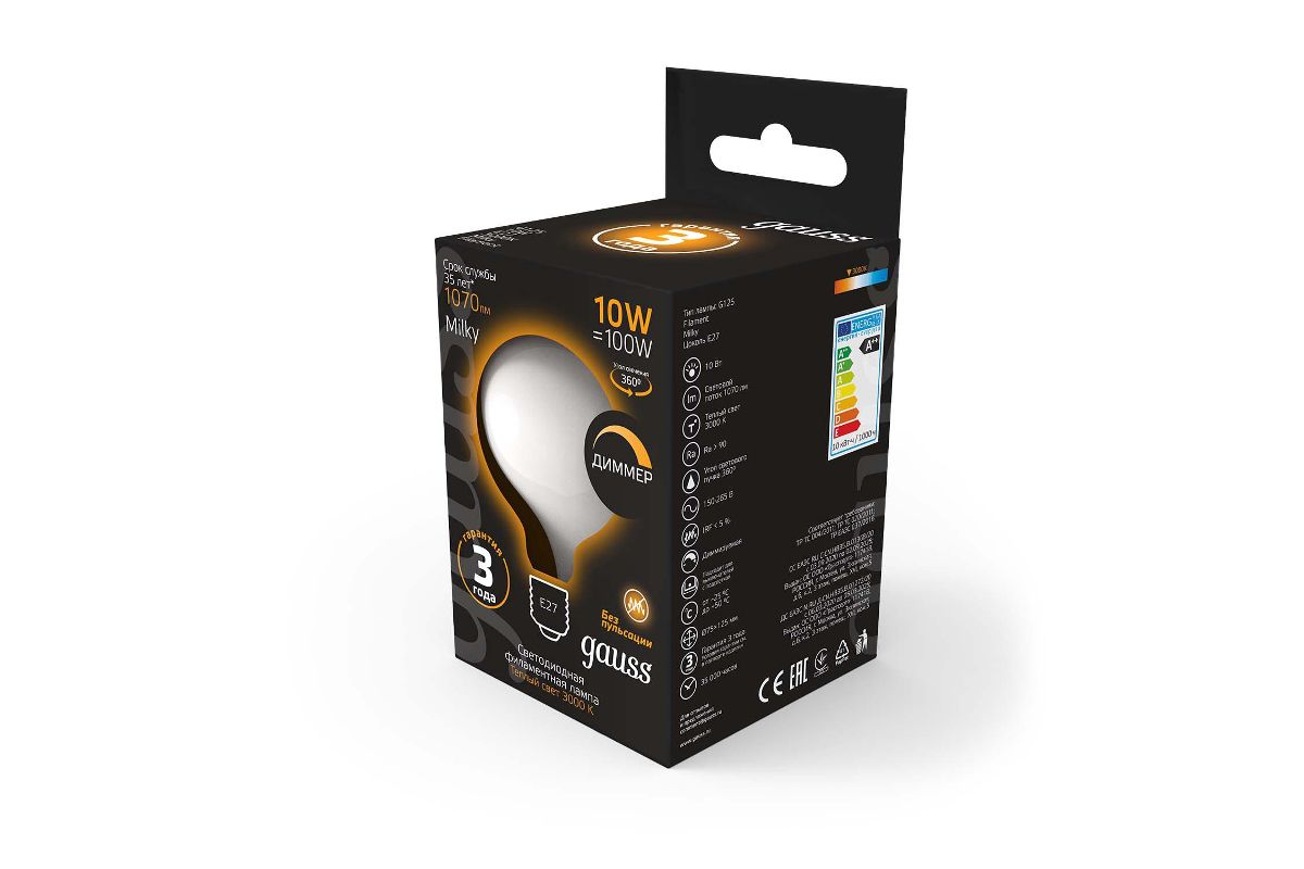 В ассортименте филаментных ламп бренда Gauss отдельную нишу занимают модели с молочной колбой. Главная их особенность - равномерное освещение пространства мягким светом, не слепящим глаза. Такие лампы широко применяются для декорирования домашнего интерьера, а также кафе, ресторанов, гостиниц, галерей, витрин и прочих помещений. Кроме того они очень востребованы в индустрии фото-видео съемки.